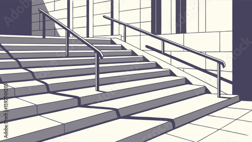Minimalist Vector Wheelchair Accessible Ramp and Building Entrance Design