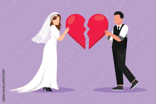 Clip art of a couple holding each part of broken heart symbol, divorce concept, simple flat vector illustration