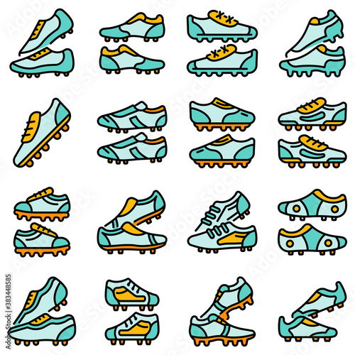 Football boots icons set. Outline set of football boots vector icons thin line color flat on white