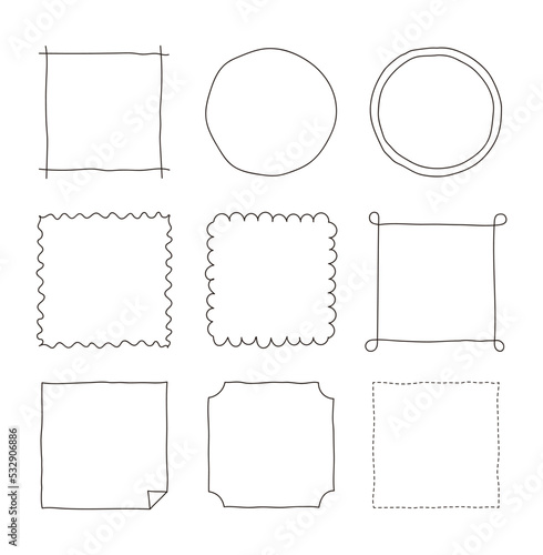 Frame line set hand drawn, square rectangle oval outline shapes collection