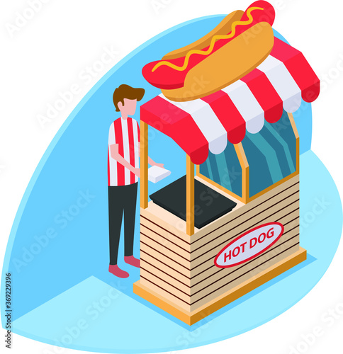 Stand hotdog icon flat vector. Hot dog. Cart food isolated