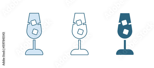 Set of wine glass. Alcohol beverage vector icons on white background.