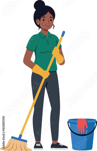 Cleaning service professional maid with mop and bucket for home and office cleaning services company logo design