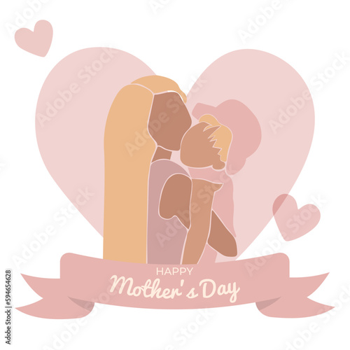 Happy Mother's Day card. Women hugs the child. Mother hugs her son. Faceless vector illustration. EPS 10.