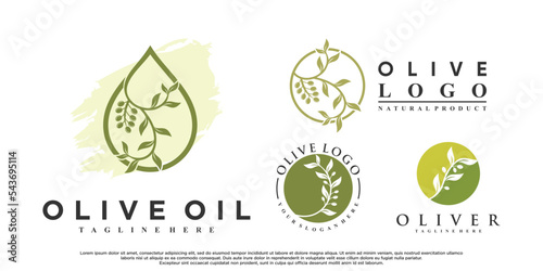 Bundle olive oil logo design with creative concept Premium Vector