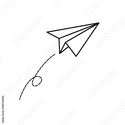 Paper plane with dotted line, Origami paper airplane, Travel symbol, vector illustration. Isolated. Outline. Hand drawn doodle airplane. Black linear paper plane icon eps 10.