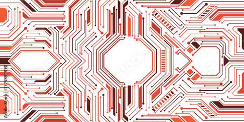 Abstract geometric circuit board design with octagonal center and interconnected lines isolated on white background