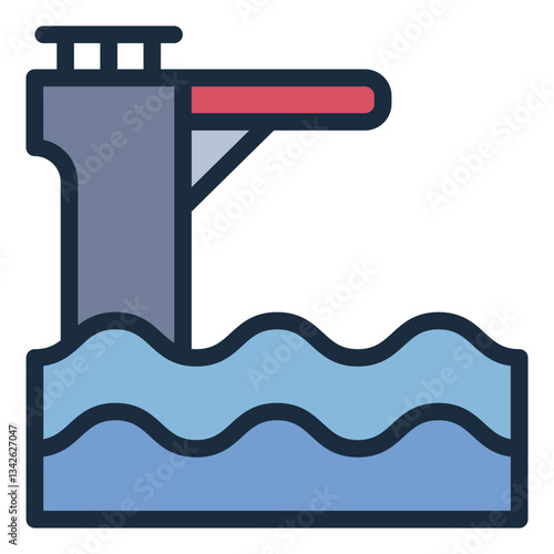 Minimalist illustration representing a diving platform over water, evoking concepts of summer, swimming pools, and aquatic sports