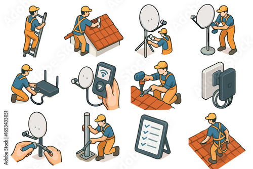 Black silhouettes of network tools and cable tester equipment for ethernet setup
