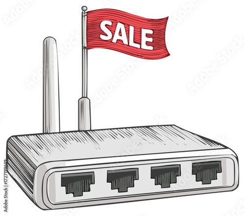 Stylized Wireless Internet Router Illustration Two Antennas and Connection Ports