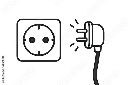 Electric plug socket connect disconnect cable wire icon simple graphic illustration, idea of error failure 404 web page black white, electricity energy power cut, circuit network stop working image