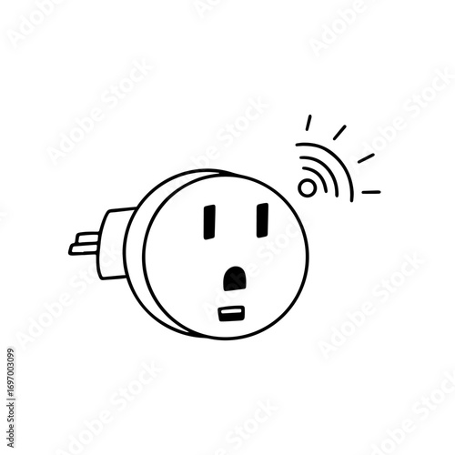 Electric socket with plug vector illustration. Electrical outlet vector icon isolated on white background. Connect disconnect line symbol.