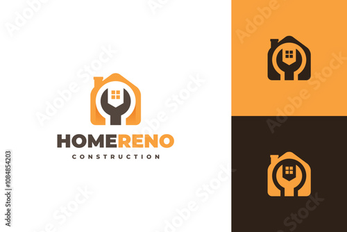 Professional home renovation construction tools house emblem logo design concept