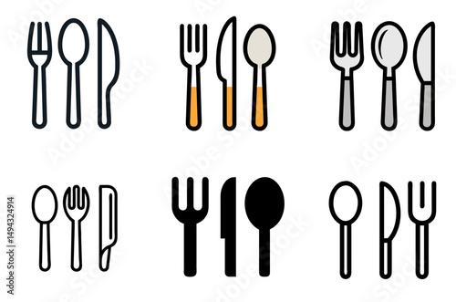 A diverse collection of minimalist black and white cutlery icons and silhouettes