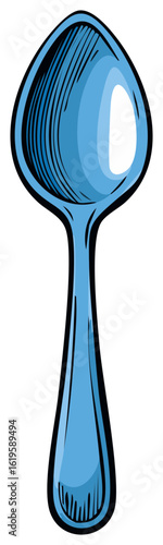 Vibrant blue spoon illustration single piece of kitchen cutlery tableware utensil drawing