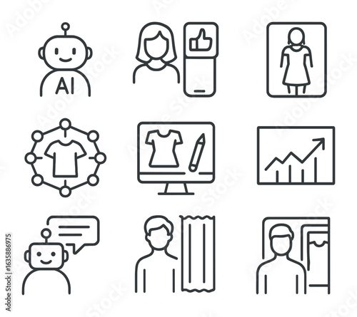 Business communication, Video conference icon set with white background. Thin line style stock vector.