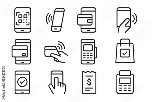 Digital payment icons: nfc, qr pay, mobile wallet, online checkout, contactless card