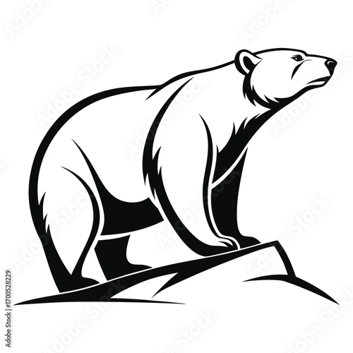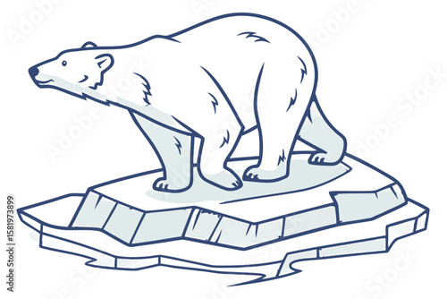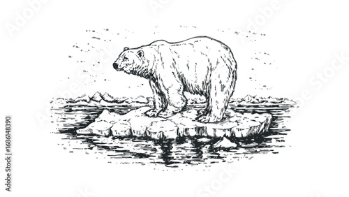 Engraved polar bear illustration on ice floe for wildlife conservation and educational design