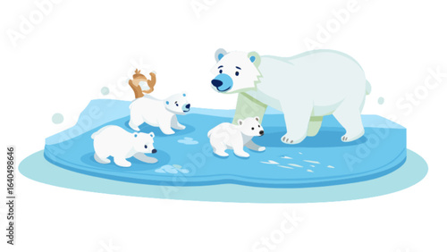 Cute polar bear family on ice floe illustration for arctic wildlife and nature themed designs and prints