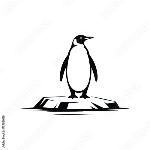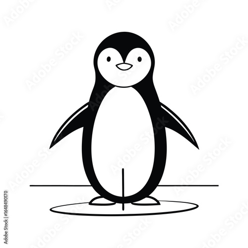 Minimalist penguin standing upright on an ice floe with balanced pose
