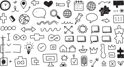 Collection of Hand Drawn Doodles Frames Arrows Circles Check Marks and Crosses Vector Illustration for Design and Creative Projects