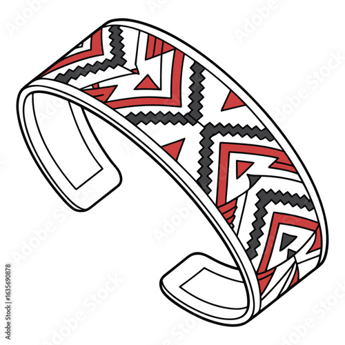A wide cuff bracelet with intricate geometric arrowhead patterns, meticulously handcrafted with tiny beads for a bold statement piece.