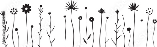Botanical silhouette collection of vertical and diagonal linocut designs for artistic decor