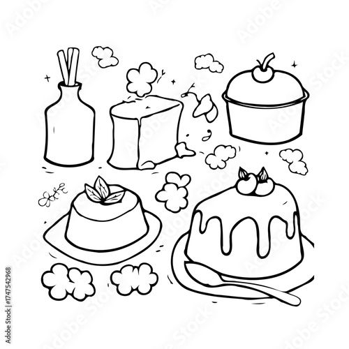 Delightful dessert doodles a whimsical monochrome collection of handcrafted confections in a