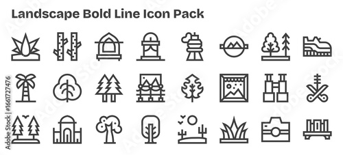 Illustrated mountain and volcano collection: peaks, eruptions, canyons, stumps and gorges in monochrome.Colorful icons set illustrated
