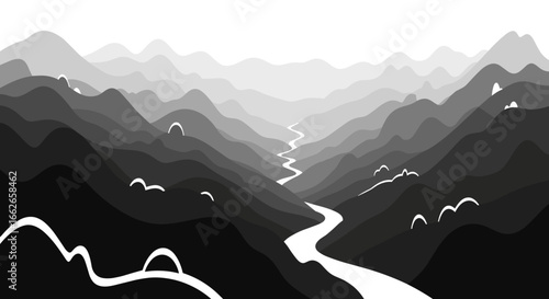 Mountain landscape with cave entrance graphic vector illustration monochrome design