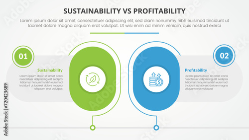 sustainability versus profitability comparison opposite infographic concept for slide presentation with big round capsule shape outline with flat style