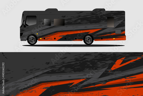 Camper van vector illustration with grunge texture, side view recreational vehicle design
