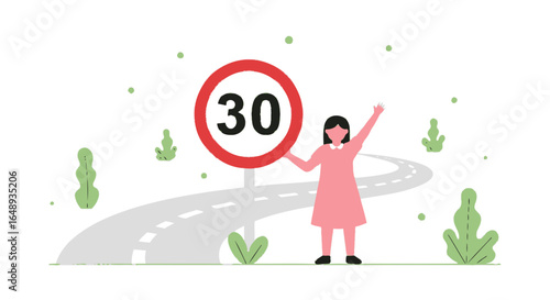 Celebrating Turning Thirty Milestone with Road Sign and Optimistic Future