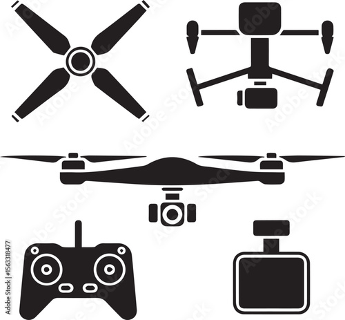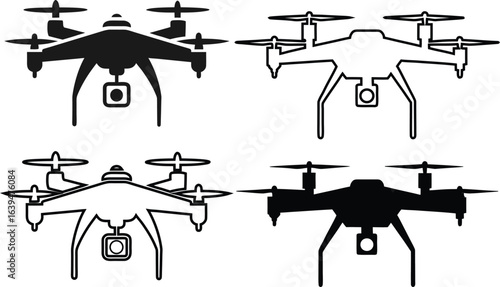 drone silhouettes, quadcopter icon, aerial vehicle, UAV silhouette, rotor drone, unmanned aircraft, drone design, flying drone, drone shapes, aerial technology illustration