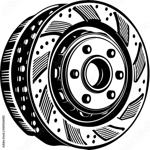 Vector art of detailed vector illustration of a car brake disc rotor showcasing automotive engineering design