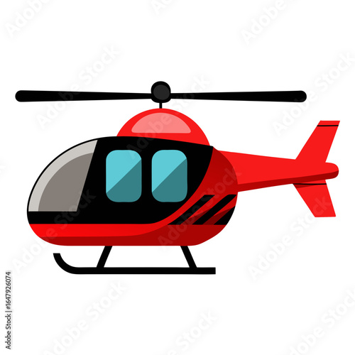 Cartoon helicopter with rotor blades rotating against a plain white background