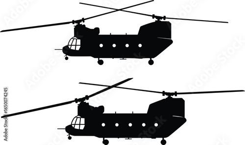 Military helicopter silhouette, twin rotor aircraft, Chinook transport helicopter, aviation, flying machine, army vehicle, air force, defense, flight, technology