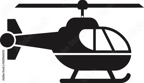 Black silhouette of a simple helicopter with rotor blades and landing skids rotorcraft aircraft
