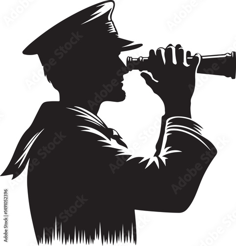 Cartoon character of Christopher Columbus holding telescope. Columbus day.