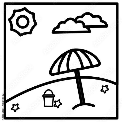 Clean outline icon of a beach umbrella in vector, ideal for summer-themed designs.