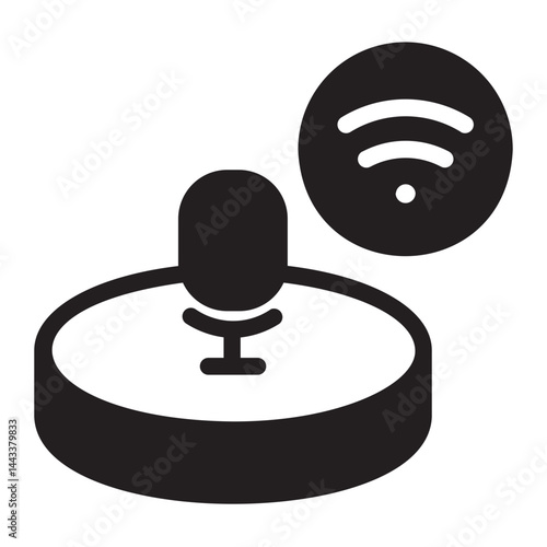 Flat black voice assistant microphone icon in a circular design on a simple white background