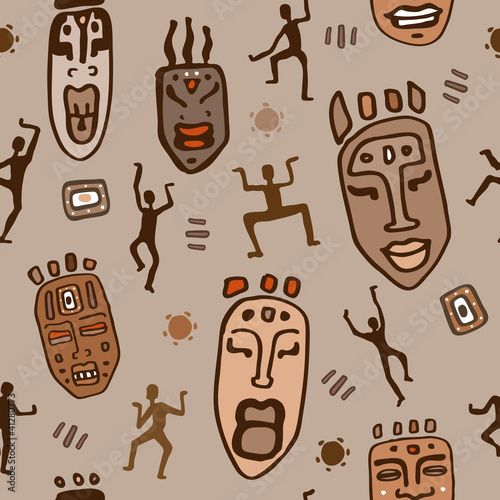 Ethnic seamless pattern. Tribal style African mask.