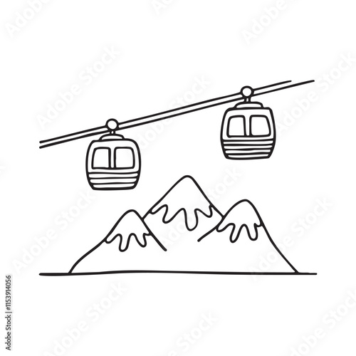 Cable car vector illustration, mountain gondola transport icon for tourism, adventure travel, and aerial lift design