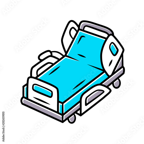 Motorized, electric hospital bed color icon. Device for physically disabled people. Paraplegic person treatment. Inpatient care, rehabilitation equipment. Isolated vector illustration
