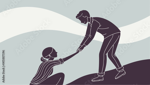 Minimalist Hiking Illustration with Mountain Landscape for Adventure, Travel, and Outdoor Lifestyle Content to enhance travel blogs and promote outdoor activities.