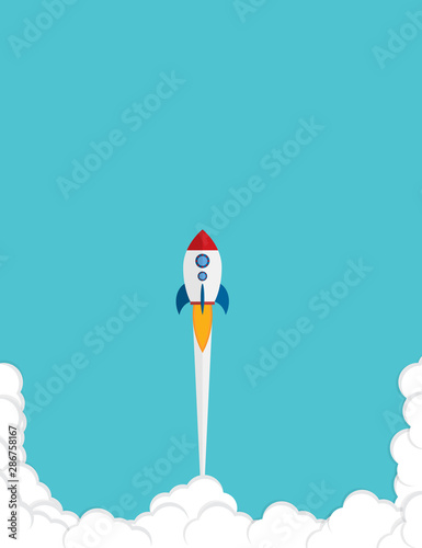 Rocket launch from laptop screen. Business start-up concept. Launching new product or service. Successful new business project development boost. Creative idea. Vector.