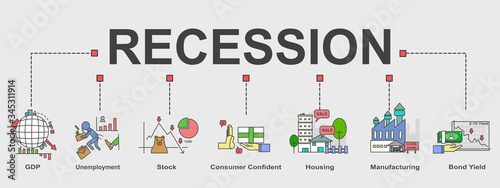 Vector banner of Recession of economic topic. Creative flat design for web banner, business presentation, online article .