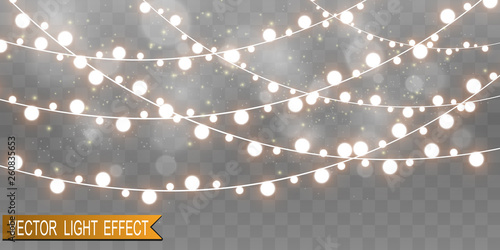 Christmas bright, beautiful lights, design elements. Glowing lights for design of Xmas greeting cards. Garlands, light Christmas decorations.