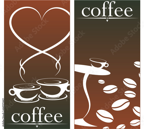 Coffee design poster set. Vector drawing coffee tree in different colors, poster layout, menu, banner. Design elements.