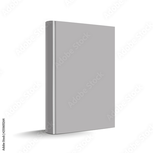 Blank white standing softcover book or magazine mockup template white and gray background.